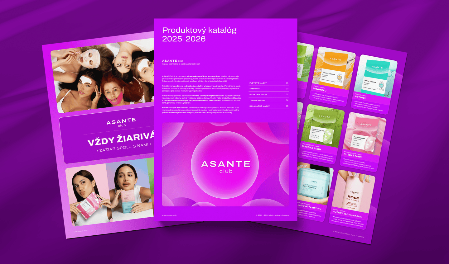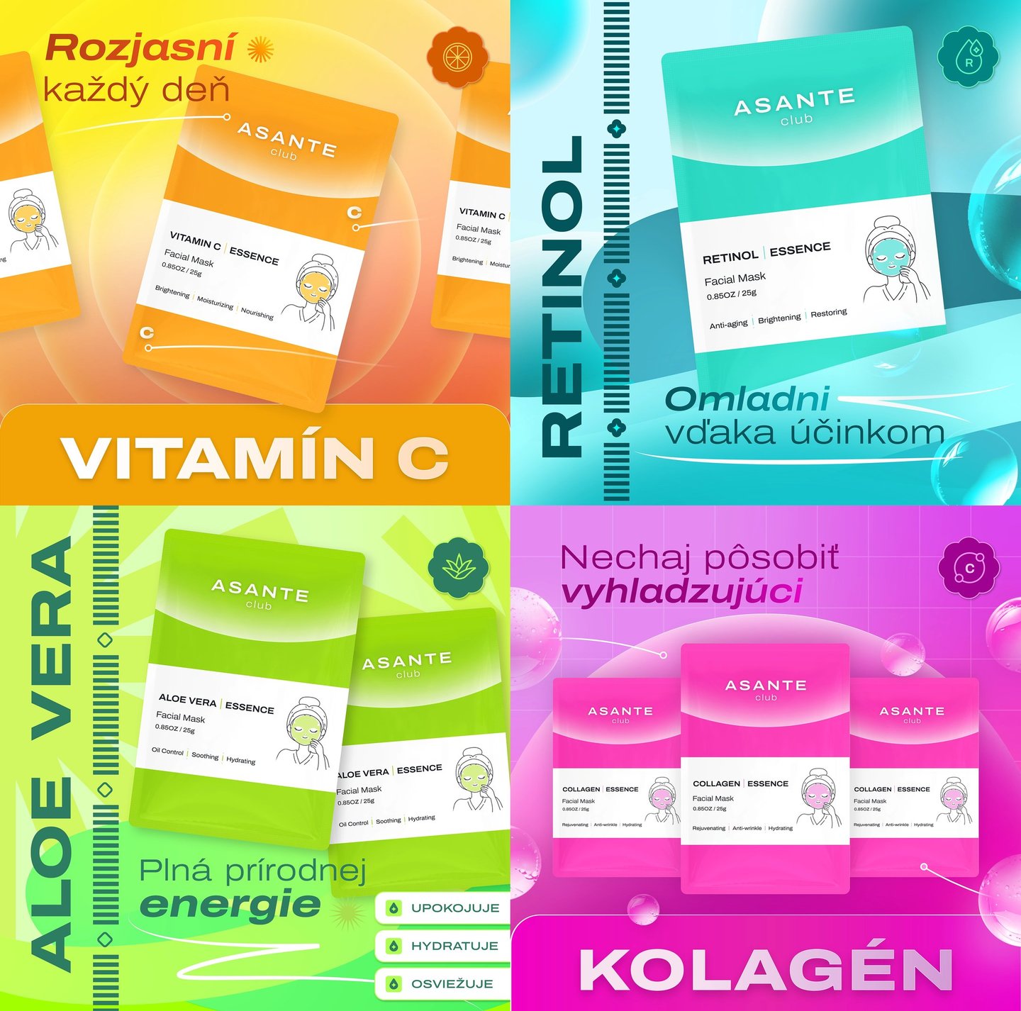 Vizuálna identita značky je jednoduchá, čistá a farebne výrazná, čo jej zabezpečuje silnú prítomnosť na pultoch a zapamätateľnosť. Jasné farebné kódy uľahčujú identifikáciu jednotlivých produktov, zatiaľ čo neónové tóny zdôrazňujú kľúčové zložky a zvyšujú viditeľnosť. Kombináciou výrazných, živých farieb s minimalistickým dizajnom sa ASANTE club odlišuje na konkurenčnom trhu s kozmetikou v sortimente masiek.