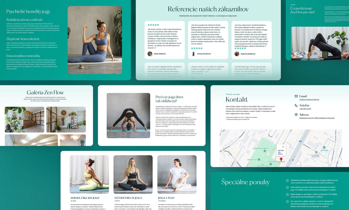 Zen Flow je útulné jogové štúdio v centre Bratislavy, ktoré ponúka širokú škálu služieb – od rôznych lekcií jogy až po gongovú meditáciu, zvukovú terapiu a špecializované workshopy. Všetky aktivity sú navrhnuté tak, aby podporovali osobný rast, pohodu a celkové zdravie. Redizajnoval som webovú stránku štúdia, aby nahradila predošlú neprehľadnú verziu.